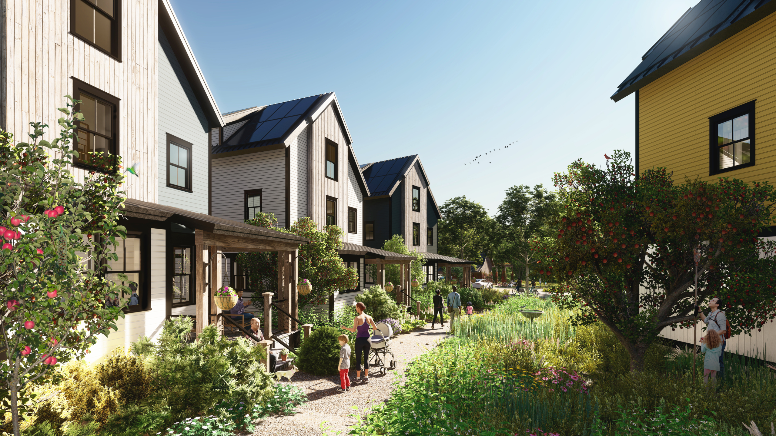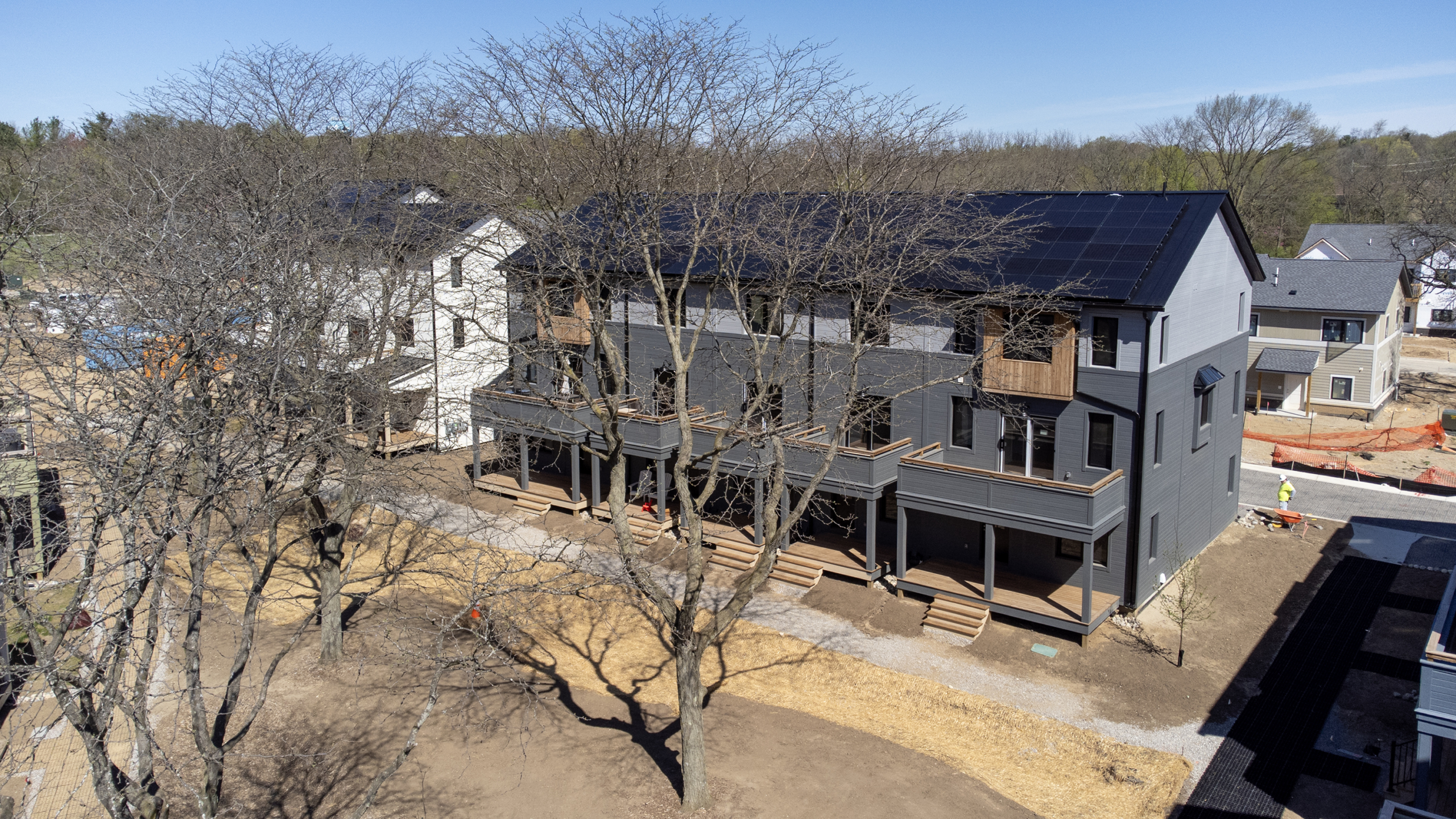 Veridian at County Farm is a 170-home mixed-income community in Ann Arbor powered entirely by solar and geothermal energy.