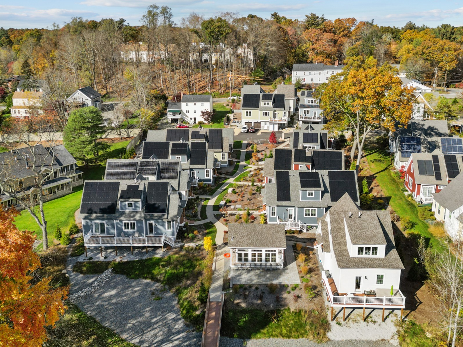 The development features 14 net-zero-ready cottages built with high-quality craftsmanship and modern amenities, creating charming, high-performance living spaces. Each home is completely fossil-fuel free with no gas hookups or oil tanks, reducing homeowner costs while improving energy efficiency.