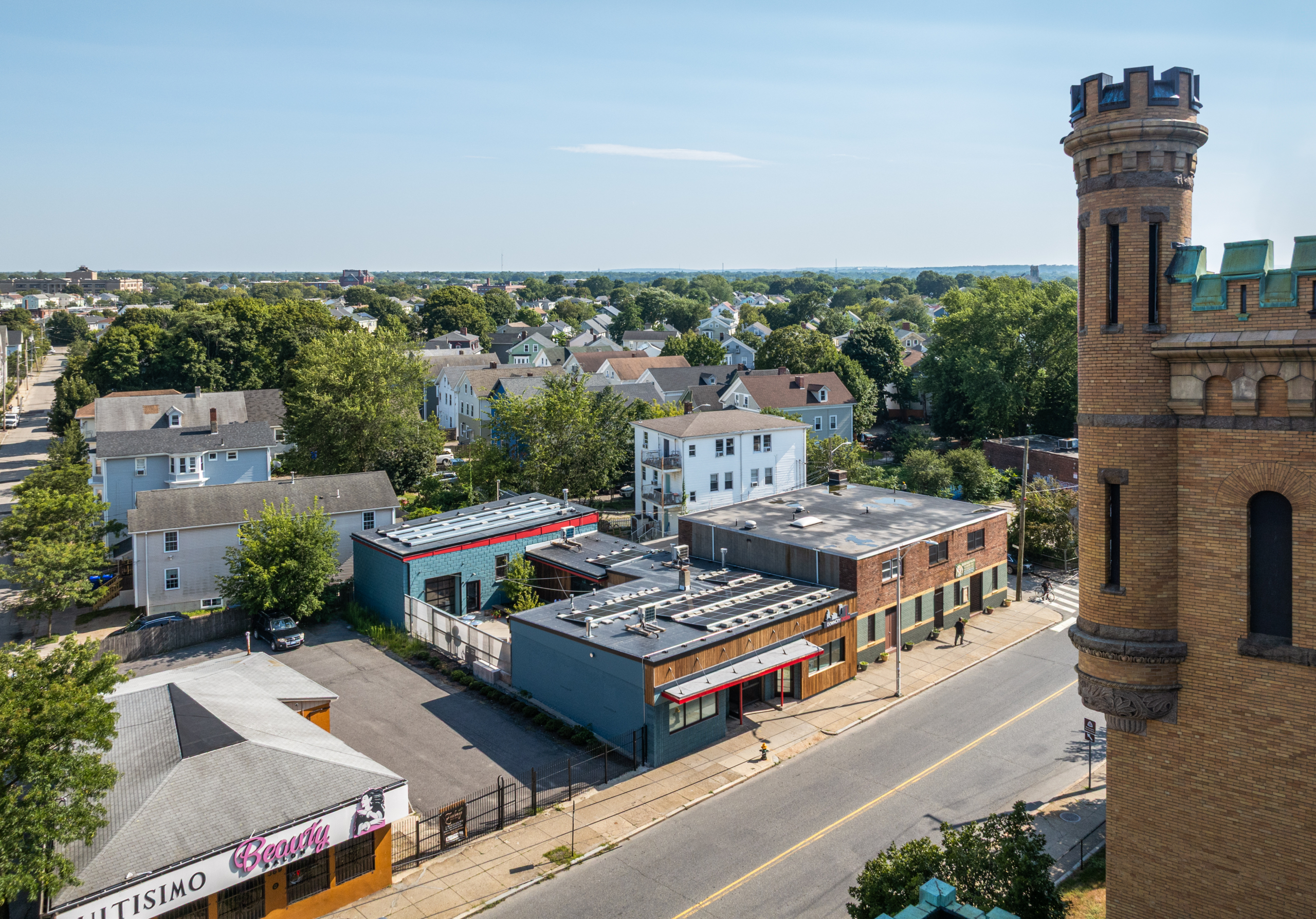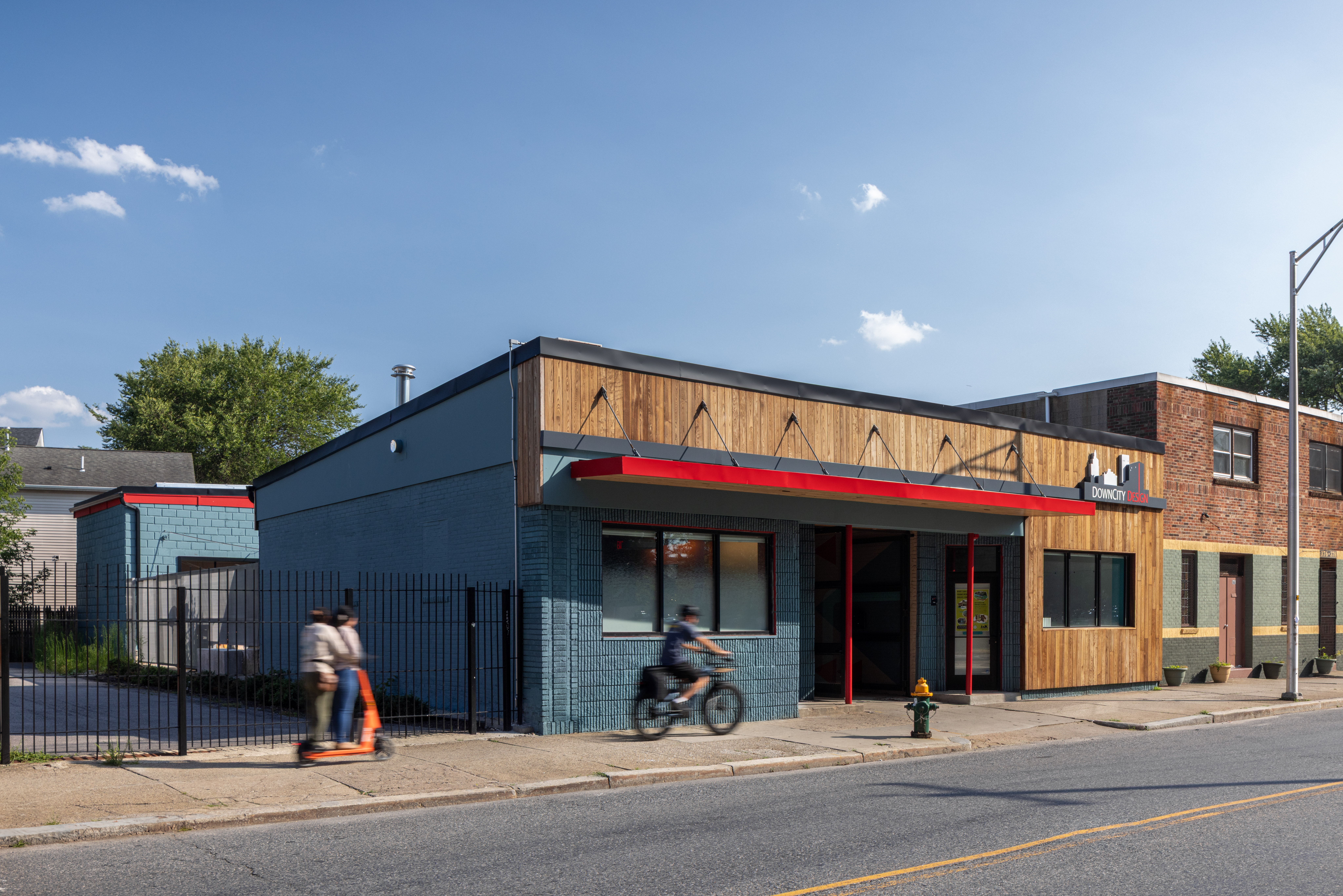This transformation of a 135+ year-old site into a vibrant hub reflects DownCity Design’s commitment to creativity and community. The design carefully balances historic preservation with modern function, featuring a façade of thermally modified wood, refreshed fluted block in DCD’s signature teal, and a bright red canopy that welcomes students and provides shelter for RIPTA bus riders.